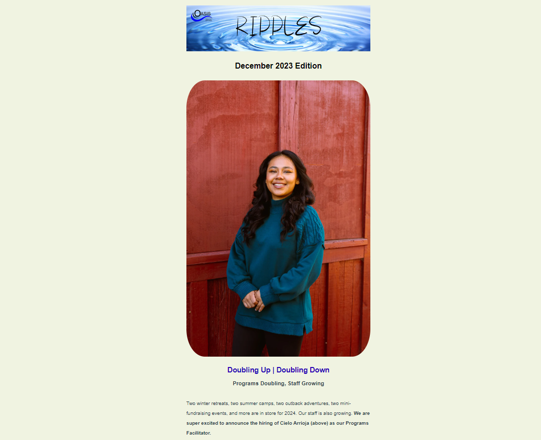Doubling Up and Doubling Down, we are adding key staff roles that can grow as we do. Meet Cielo Arrioja, our new Program Facilitator in 2024!